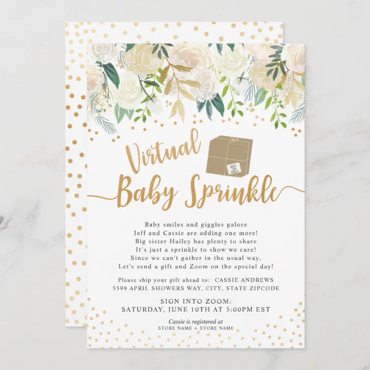 White Floral Virtual Baby Sprinkle Baby Shower Invitation Zazzle